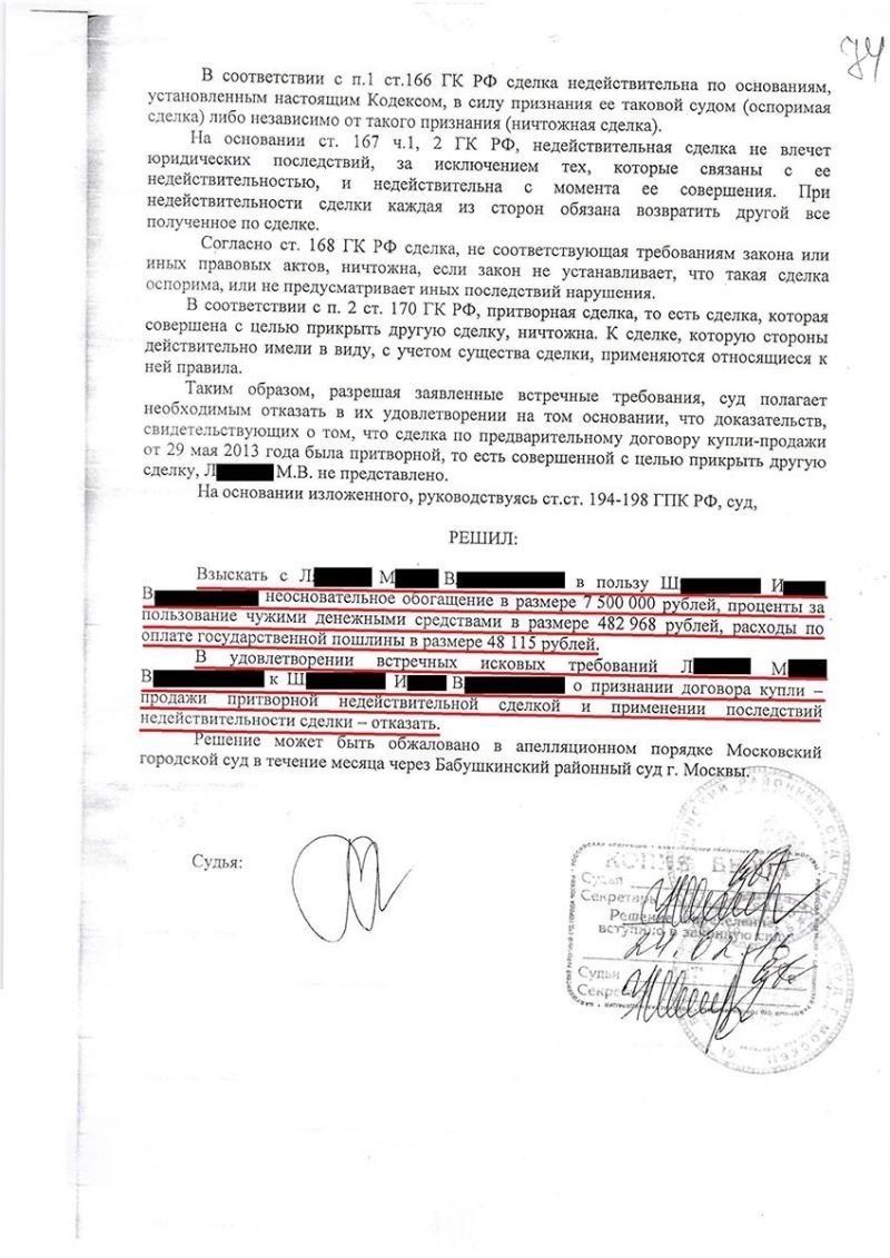 В 2014 году клиент Ш. заключила предварительный договор на покупку квартиры и оплатила продавцу 7 500 000 руб., однако, продавец отказался заключать основной договор и передавать квартиру, а полученные деньги не вернул.