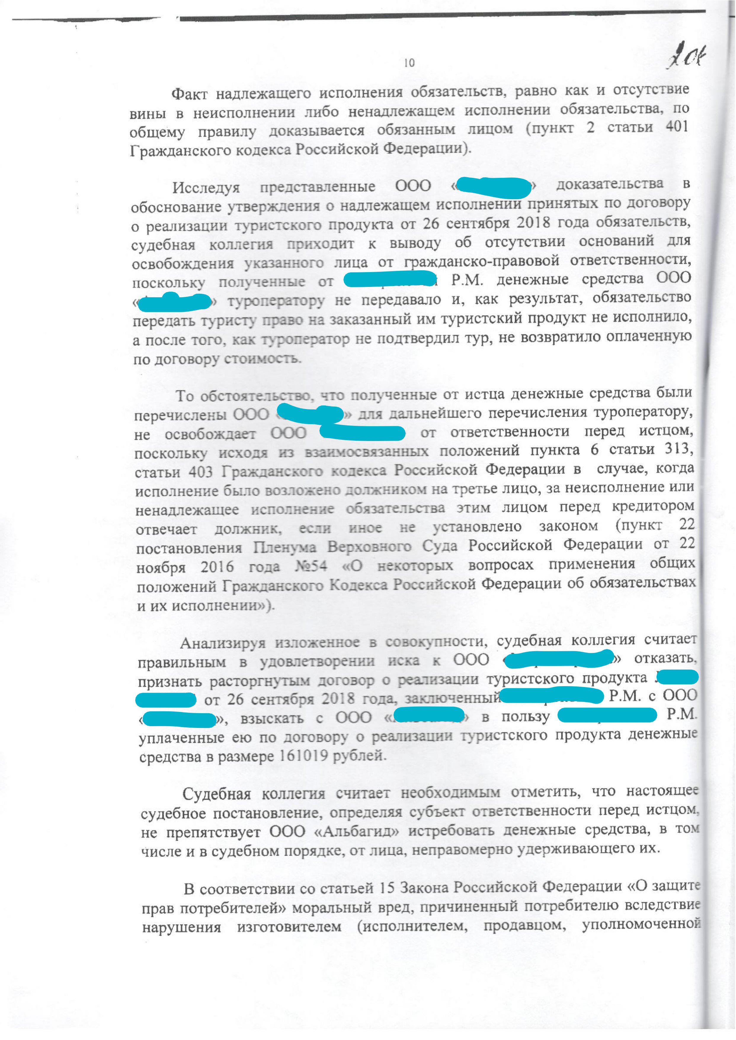 Суд взыскал с туроператора в пользу клиента потраченные средства в размере 161 019 рублей, а также штраф в размере 92 037 рублей 89 копеек.